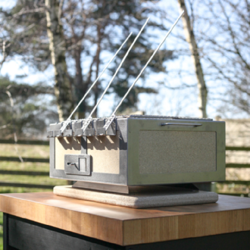 • Opvallende presentatie, als je je eten hoog boven het vuur presenteert, is dat niet alleen een betere manier van koken, maar ook een waar pronkstuk voor elke grillgelegenheid. Dit mag gezien worden in de open keuken!