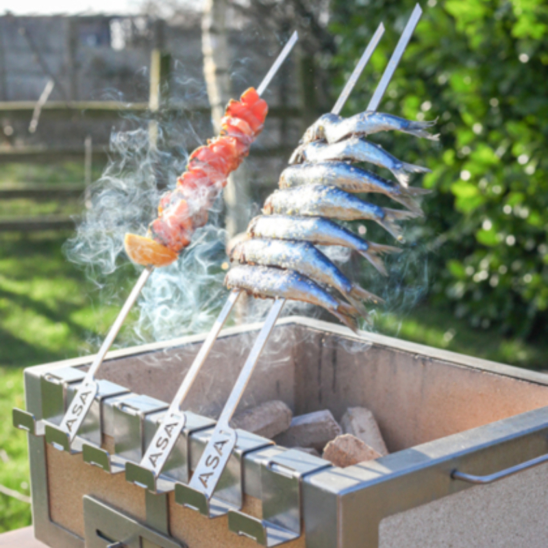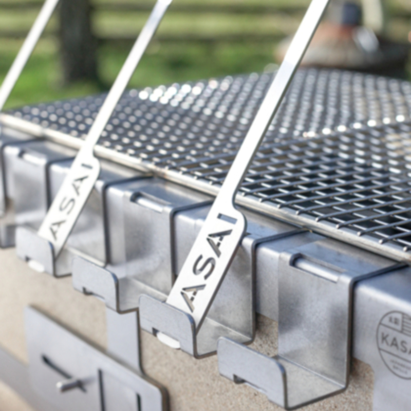 Maak kennis met de EPTO spiesenset, een slimmere en efficiëntere manier om te grillen. Til je grillervaring naar een hoger niveau met de EPTO spiesenset, ontworpen om je vis, vlees en groenten omhoog en uit de buurt van de kolen op je Kasai Grill te houden. Elke beugel wordt geleverd met 6 spiesen. De beugel is een nauwkeurig ontworpen opzetstuk dat stevig op het frame van elke Kasai Grill past. Moeiteloos te monteren. Lees onderaan verder.
